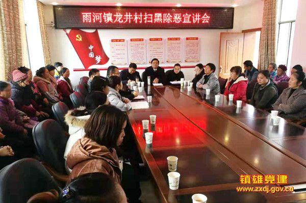 2019年2月23日,龍井村干部、雨河鎮黨委政府掛片干部及云天化集團駐村扶貧工作隊全體人員齊聚龍井村會議室,共商就如何貫徹和落實好縣委、縣政府關于在鎮村基層政權轄區內開展掃黑除惡專項斗爭整治活動的通知要求。會議就掃黑除惡專項斗爭的重要意義、目的要求、行動方案進行了闡述,對相關工作進行了安排部署,著重強調了各個階段的任務和整治重點。會議決定成立組織領導機構,負責領導龍井村掃黑除惡專項斗爭整治工作,一場掃黑除惡的專項斗爭活動在龍井村拉開了序幕。