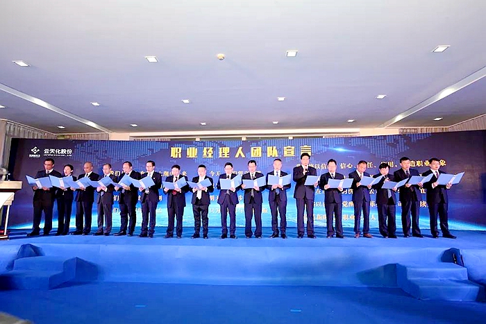 2019年1月10日,云天化股份年度工作會議上,職業(yè)經(jīng)理人代表舉行宣誓儀式