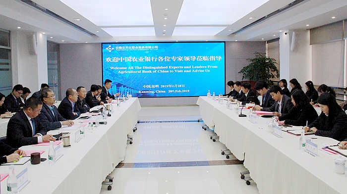2月28日,中國農業銀行金融市場部一行到訪公司旗下云南云天化聯合商務有限公司,雙方就人民幣匯率及深化合作進行了洽談。