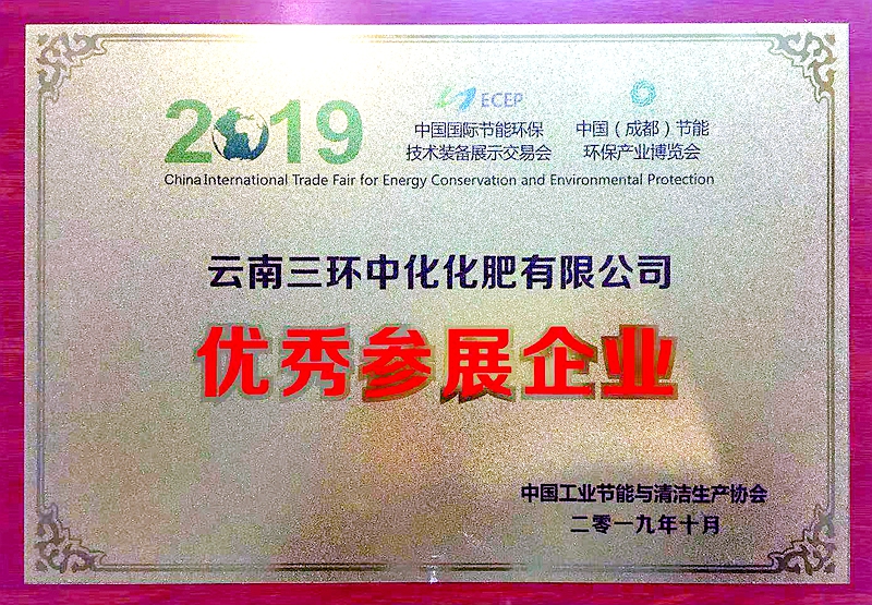 近日,公司所屬云南三環(huán)中化化肥有限公司受邀并代表云南省化工行業(yè)參加2019中國國際環(huán)保技術裝備交易會暨中國(成都)節(jié)能環(huán)保產(chǎn)業(yè)博覽會,獲評優(yōu)秀參展企業(yè)。