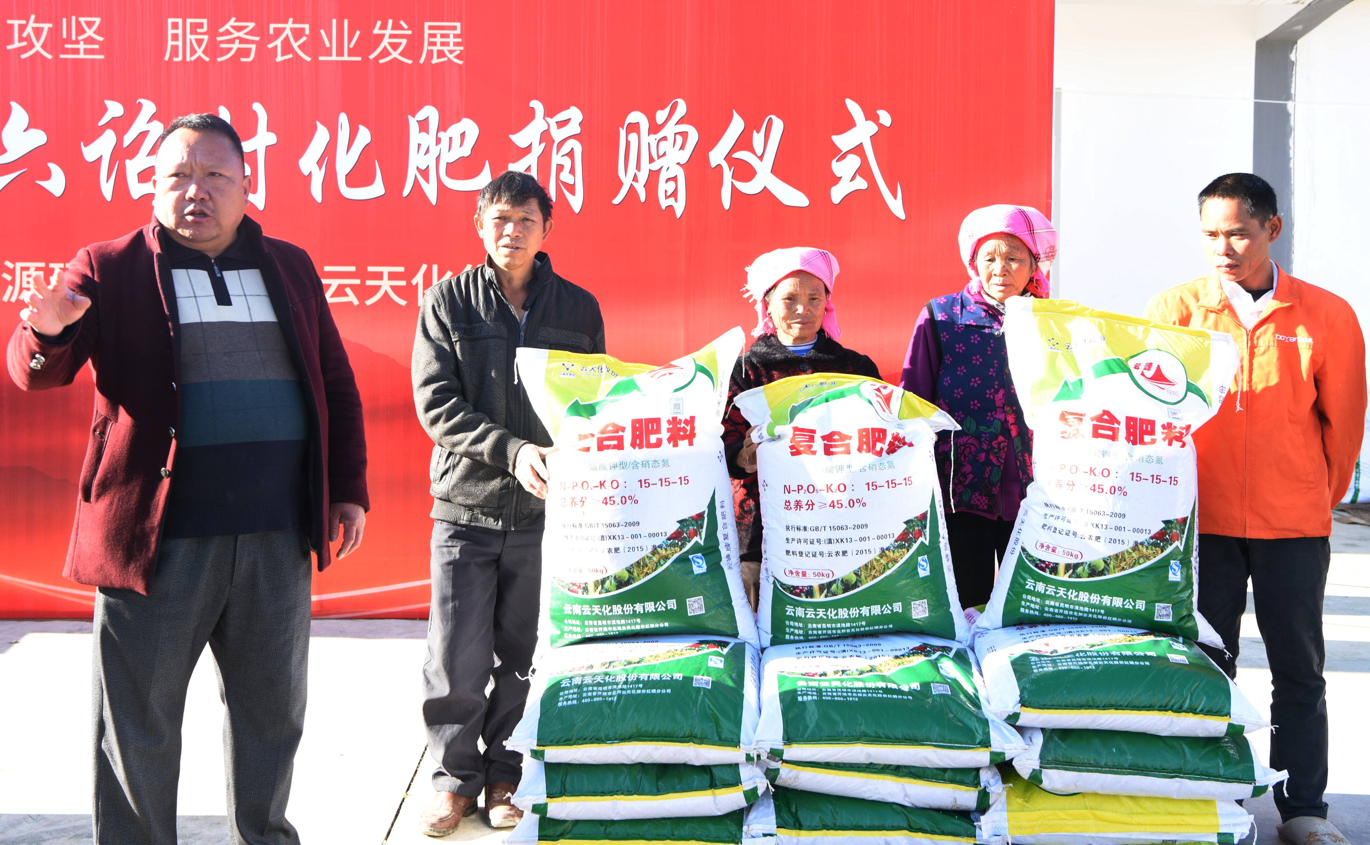 1月18日,云天化向文山州硯山縣者臘鄉六詔村捐贈70噸化肥,為當地村民春耕送去“及時雨”。本次捐贈活動由云南省政協人口資源環境委員會和云天化共同舉辦。