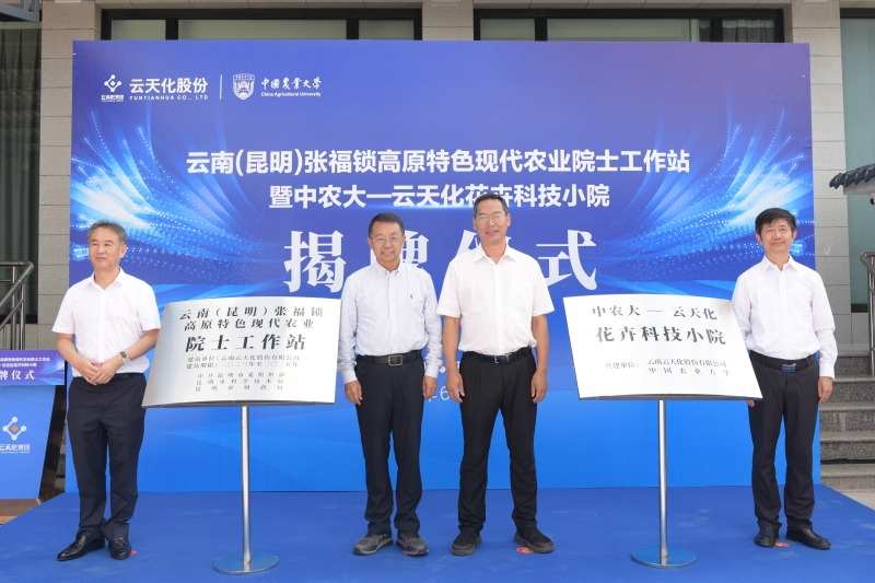 中國工程院院士、中國農業大學教授張福鎖,昆明市副市長張勤勛,云天化集團黨委書記、董事長張文學,晉寧區委書記楊萬洪為院士工作站、中農大-云天化花卉科技小院揭牌。